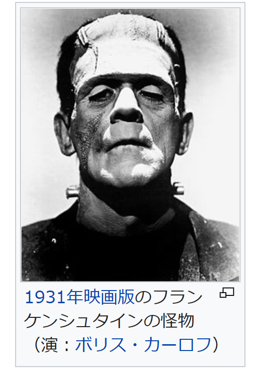 ・では、上記の(頭にボルトの)二次創作物の元ネタは何なのか?と考えますと、非常に不可解な案件です・・、白黒映画や『怪物くん』では、頭にボルトはありません