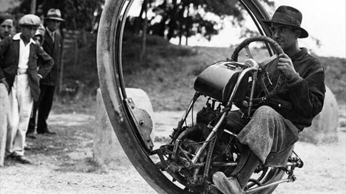 ※一輪バイクって、けっこう昔から普通に実在しているのですが、ご存知でしたでしょうか?(編者は、架空の乗り物だと思っておりました・・。)