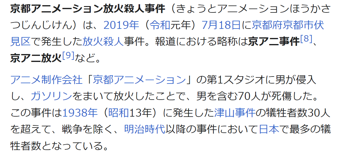 ※36名が亡くなれらた放火事件「京アニ事件」は、2019年(令和元年)の事件ですが、もっと以前の事件だったように思いませんか?