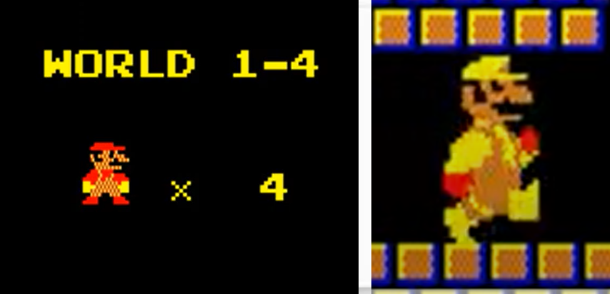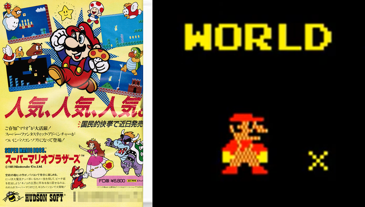 ・例外として、PC-8801版のスーパーマリオブラザーズ(1986年 / ハドソン)では、ドット絵でも白手袋になっています(ハード性能による色制限の違い?・・違和感が強いですよね。ファイアマリオだと赤手袋?になっています。)