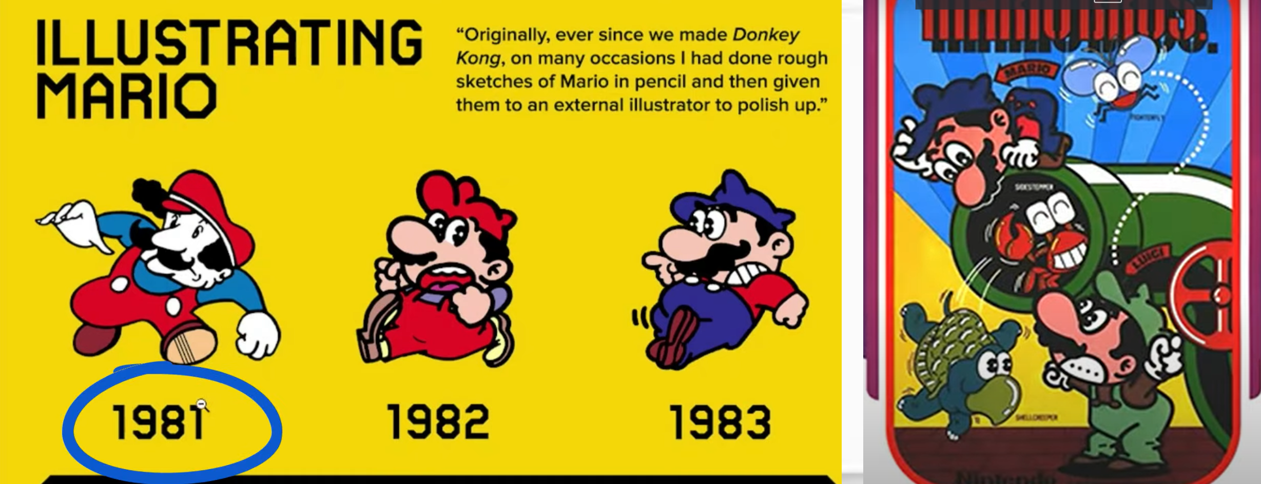 ・イラストでは、1981年(AC版ドンキーコング)から白手袋の有無が混在、ドット絵では、スーファミ版の1990年(北米等では91年発売)から白手袋で、簡潔に言いますと、スーファミ以前のスーパーマリオは、イラストとドット絵とで、手の色が違っています(例外あり)