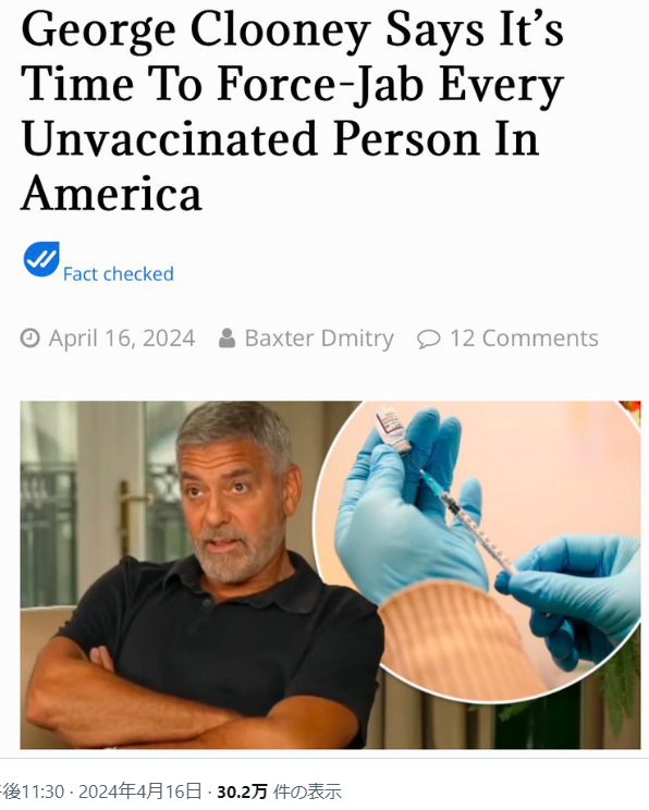 ゴリゴリ(向こう側)、ワクチソ推進派のクルーニー氏、(ケツアゴ消滅マンエフェ覚知されないように?)アゴ髭w