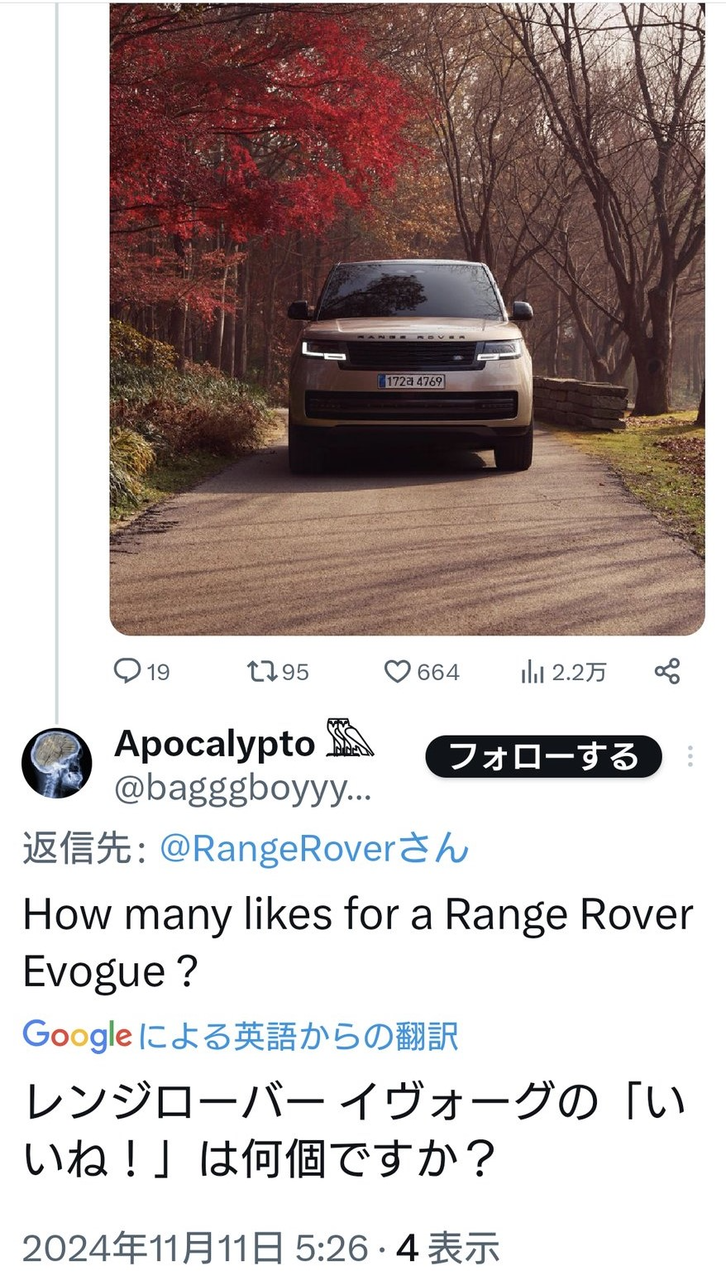 ※ 前記事の イヴォーク (EVOQUE)案件、下記ポストのように、海外の方々も『EVOGUE』と ポストを されています・・引き続き、ご意見コメント頂ければ幸いです。