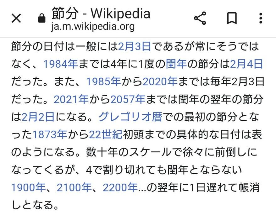 1984年までは4年に1度の閏年の節分は2月4日だった・・