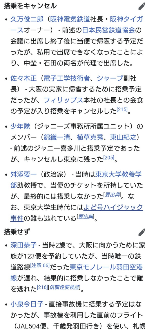 ③ ジャニー喜多川 氏も搭乗を回避されていますが(レコードデビュー直前の)少年隊も同行予定だった事、ご存知でしたでしょうか?(マンエフェ前世界線では、少年隊同行予定の話は無かったと思います。)