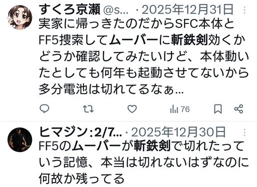 ※ FF5 のムーバー 、斬鉄剣が有効だった記憶の方々がおられる案件