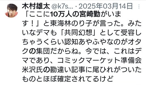 ・ 10万人の宮崎勤 案件 2026年01月30日 ※(マンデラ界隈的には古い案件ですが) 「ここに、10万人の 宮崎勤がいます」発言案件、皆さんの記憶は?◎ 2017年の ヤフーの記事◎ この案件についてのポスト◎ 関連で、『悪魔の女医さん(ギニーピッグ4)』が「ギニーピッグ3」だった記憶 案件は、以前に記事にしておりました。 < 前の記事次の記事 > コメント コメント一覧 (5) 5. 名無し 2026年01月31日 22:15 管理人さん ご対応ありがとうございます。 関連して、面白い記事を見つけましたので お手隙の際にでも参考程度にお読みください。 https://hero-news.com/archives/1769769911.html 是非、記事本文からコメント欄まで読んでみてください。 ここはマンデラ効果など全く畑違いなスレ・ブログなのですが 管理人さんは『マンデラの目線』をお持ちでしょうから 是非その目線でお読みいただけると、面白く読めるかと思います。 3. 名無し 2026年01月31日 18:55 管理人さん ウルトラセブンのエメリウム光線(タイプA)の発射ポーズに違和感大アリなのですが、 いかがでしょうか? 参考 https://x.com/ccp_official_jp/status/2015714057513476223?s=20 それ以外にも、エメリウム光線のみならず他の光線技についても 「記憶と違う」「変」「全話観たのに知らなかった」と言う人も居ましたので、 そういうことなんじゃないかと思っております。 私の記憶では、エメリウム光線は指をクロスさせるのではなく ビームランプに指を添えるようなポーズだったと思いますが。 ちなみに、某洗濯洗剤のCMでマツケンさんもやってらっしゃいますね。 4. マンエフェ情報局、編者 江藤 2026年01月31日 21:56 >>3 痕跡ありました。記事にしますね ・ウルトラじゃんけん(ビームシュワッチ) ・菅野美穂の働きマン 2. ジェミニいわく、、、 2026年01月31日 18:49 この世界は高度な情報データで構成されたシミュレーションである。 管理者(アルコン)が都合に合わせて過去や設定を密かに書き換える。 更新時に全ユーザーの記憶を同期できず「古いデータ」が脳に残る。 その「消し忘れられた古い記憶」こそがマンデラエフェクトの正体。 事実は上書きされても、個人のキャッシュ(魂の記録)は抗い続ける。 1. 牛乳石鹸について 2026年01月31日 11:56 私の記憶では牛乳石鹸はカネボウか資生堂かの大手化粧品メーカーが製造していて、15年位前にメーカー合併(?)で「カウブランド」という名称が使われ始めたように思うのですが、実際には明治時代から一貫して「牛乳石鹸共進社」という会社が製造販売しており当時から「カウブランド」と名乗っていたようです。 私と同じ記憶の方はいらっしゃいませんでしょうか? (牛乳石鹸共進社の本社と製造工場が大阪市内にあるのも少し違和感を覚えます) コメントフォーム 名前 コメント 評価する リセット リセット 顔 星 投稿する 情報を記憶